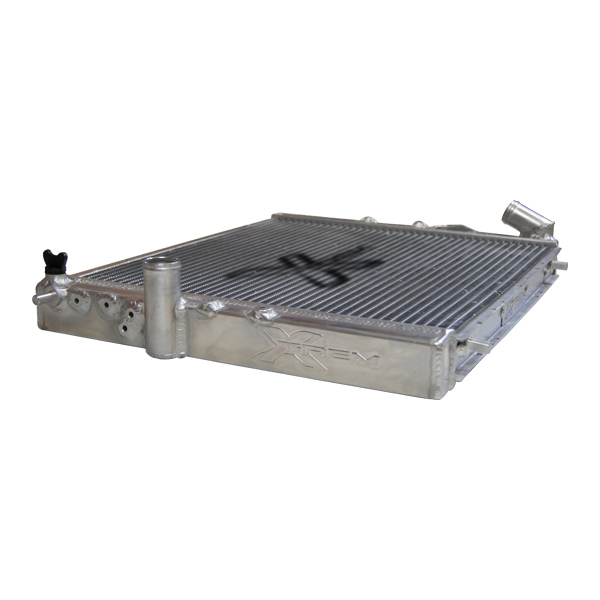 Les soudures réalisées au TIG, le faisceau racing haute performance et la finition aluminium poli apportent à ce radiateur aluminium compétition un look soigné allant de pair avec ses qualités indéniables.