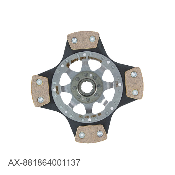 - Disque amorti fritté : Disque d’embrayage avec patins en métal fritté rivetés avec ressorts renforcés. Son coefficient de friction étant plus élevé que les disques à garniture organique, il accepte un couple transmissible plus élevé. Idéal pour une utilisation en compétition groupe N asphalte, course de côtes, courses d’endurance ou slalom, il allie confort de conduite et fiabilité.