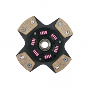 - Disque amorti fritté : Disque d’embrayage avec patins en métal fritté rivetés avec ressorts renforcés. Son coefficient de friction étant plus élevé que les disques à garniture organique, il accepte un couple transmissible plus élevé. Idéal pour une utilisation en compétition groupe N asphalte, course de côtes, courses d’endurance ou slalom, il allie confort de conduite et fiabilité.