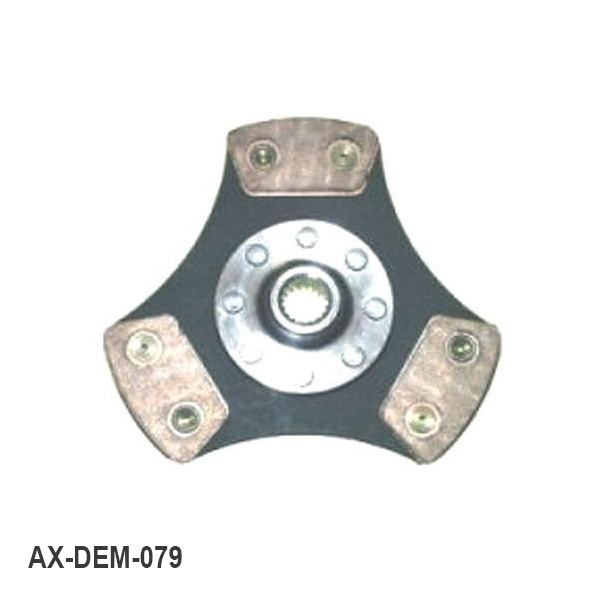 - Disque amorti fritté : Disque d’embrayage avec patins en métal fritté rivetés avec ressorts renforcés. Son coefficient de friction étant plus élevé que les disques à garniture organique, il accepte un couple transmissible plus élevé. Idéal pour une utilisation en compétition groupe N asphalte, course de côtes, courses d’endurance ou slalom, il allie confort de conduite et fiabilité.