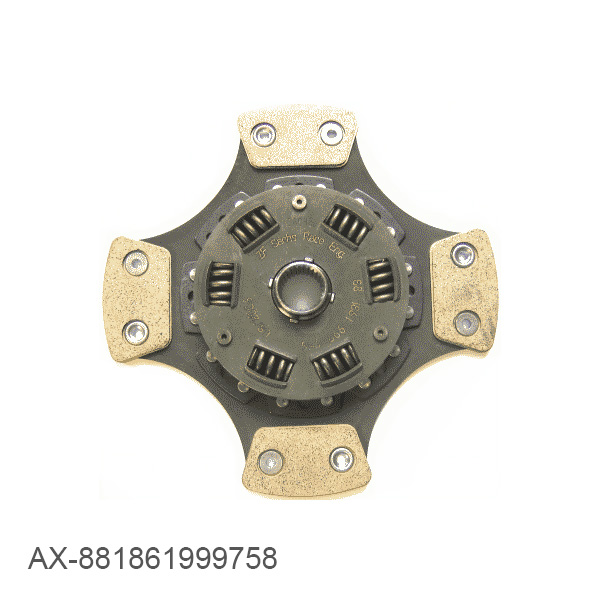 - Disque amorti fritté : Disque d’embrayage avec patins en métal fritté rivetés avec ressorts renforcés. Son coefficient de friction étant plus élevé que les disques à garniture organique, il accepte un couple transmissible plus élevé. Idéal pour une utilisation en compétition groupe N asphalte, course de côtes, courses d’endurance ou slalom, il allie confort de conduite et fiabilité.