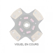 - Disque amorti fritté : Disque d’embrayage avec patins en métal fritté rivetés avec ressorts renforcés. Son coefficient de friction étant plus élevé que les disques à garniture organique, il accepte un couple transmissible plus élevé. Idéal pour une utilisation en compétition groupe N asphalte, course de côtes, courses d’endurance ou slalom, il allie confort de conduite et fiabilité.