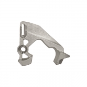 Cette belle pièce en aluminium taillée dans la masse est munie d'un système d'embase rotulée recevant le levier de vitesse et permettant un réglage en hauteur en vue de réduire le débattement de 60% environ lors du changement de rapport.