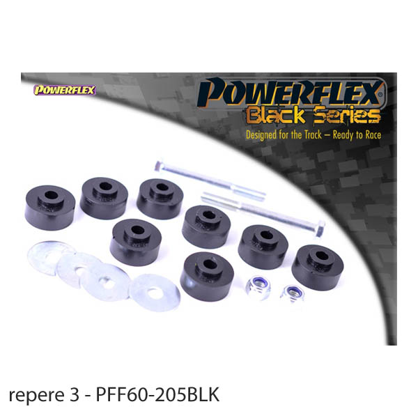Conçus spécifiquement pour les autos de courses, les silent blocs polyuréthane POWERFLEX Black Series ont une dureté environ 80% supérieure à la monte de série en caoutchouc, et 25% supérieure aux silent blocs violets de la gamme standard. Fabriqués à partir de 4 mélanges uniques de polyuréthane, ils offrent une plus grande longévité (le polyuréthane ne se détériore pas avec le temps, contrairement au caoutchouc), un haut niveau de sécurité et une importante résistance aux UV, à l’essence, à l’huile, à l’acide et à l’eau.