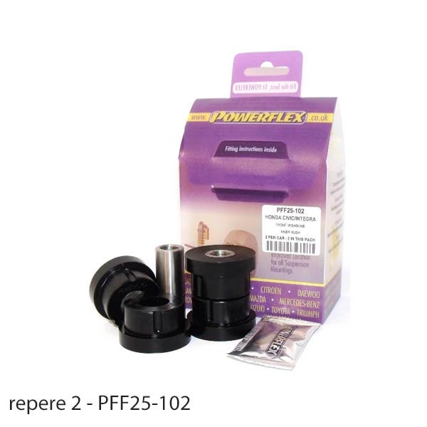 Faciles à monter - sans outils spécifiques - les silent blocs POWERFLEX pour Honda Civic CRX Del Sol viendront remplacer vos silent blocs caoutchouc d’origine améliorant ainsi la tenue de route et le travail des pneumatiques !