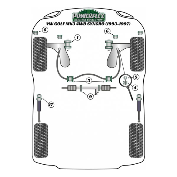 Faciles à monter - sans outils spécifiques - les silent blocs POWERFLEX pour Volkswagen Golf 3 4WD Synchro viendront remplacer vos silent blocs caoutchouc d’origine améliorant ainsi la tenue de route et le travail des pneumatiques !